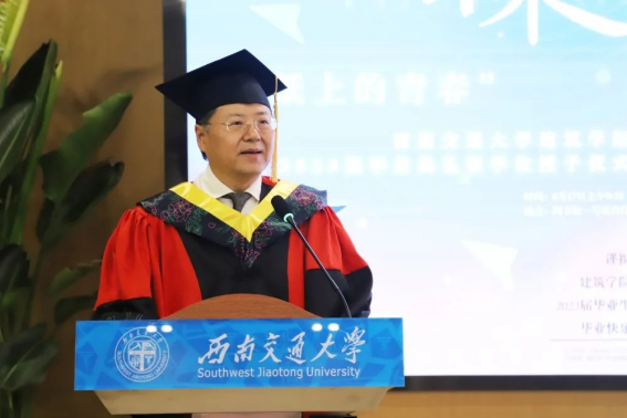 伟德体育官网本科毕业生代表高建一和研究生代表唐祥龙同学发言中,代表全体2023届毕业生,向精心培育我们的学院和老师表示衷心的感谢,感谢学院为我们提供了一个开放、创新、包容的学术氛围,让我们身临其境的感受建筑、规划、景观和美术的魅力和挑战,激发了我们对建筑艺术的热爱、探索,培养我们丰富的实践经验和广阔的视野。未来我们必将秉持初心,坚定信念,怀揣感恩,拥抱希望,牢记“精勤求学,敦笃励志,果毅力行,忠恕任事”的交大校训,发扬“竢实扬华,自强不息”的交大精神,勇敢的迈向美好的未来,为祖国发展做出我们自己的贡献!
