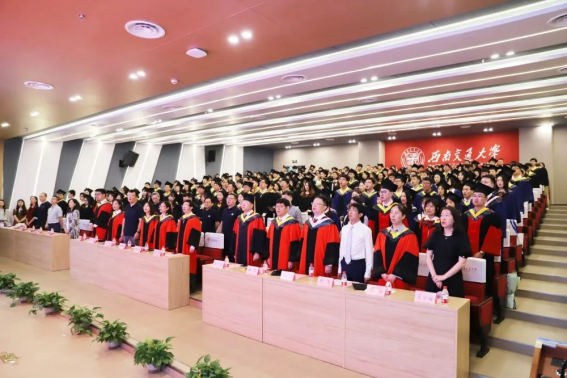 毕业生辅导员为全场毕业生献唱《凤凰花开的路口》,现场气氛热烈,在歌曲中流露出辅导员们对同学们的不舍和对同学们美好未来的期望。最后,2023届伟德体育官网毕业典礼在齐声合唱的西南交通大学校歌《文轨车书郅大同》中画下句点,仪式圆满礼成。
