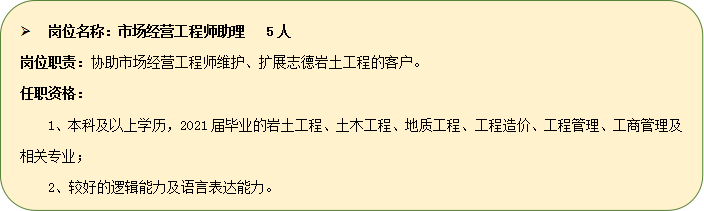 2、在志德岩土成都总部、深圳公司、重庆公司、陕西公司、云南公司、广西公司、贵州公司参加专场招聘会。