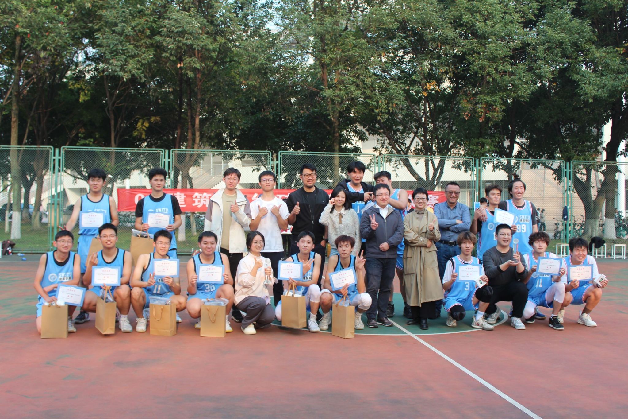 决赛结束后,伟德体育官网党委副书记与03届杰出校友吴炎龙为冠亚季军颁奖并发表讲话,肯定了篮球健儿们在赛场上奋勇拼搏、团结一心的精神,并相信他们未来在赛场上能做到更高、更快、更团结。此次活动不仅展现本院同学们的体育素质和团结精神的机会,极大的丰富了同学们的课余生活,更是对优秀校友们的感激与致敬!期待伟德体育官网的同学们能带着这种团结向上的精神在未来的生活中越战越勇!