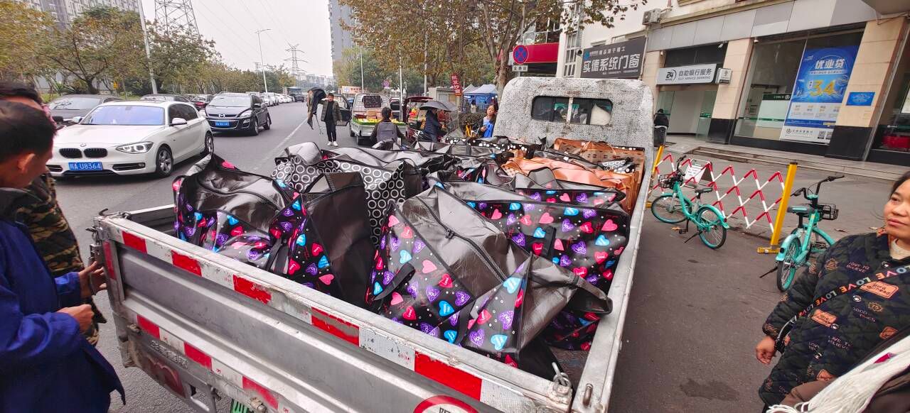 活动准备阶段,青协工作人员负责收集整理捐衣志愿者和收衣志愿者的基本信息,同时和参与者们保持密切沟通,协调各方要素,完善人员安排和活动流程。活动当日,一切流程有序展开,青协工作人员、收衣志愿者、捐衣志愿者各司其职。共计600余件衣物,一袋又一袋精心打包的旧衣服被志愿者们妥善带回,最后由建筑青协负责人将衣物送至指定地点与对接组织完成衣物交接。至此,活动圆满结束。