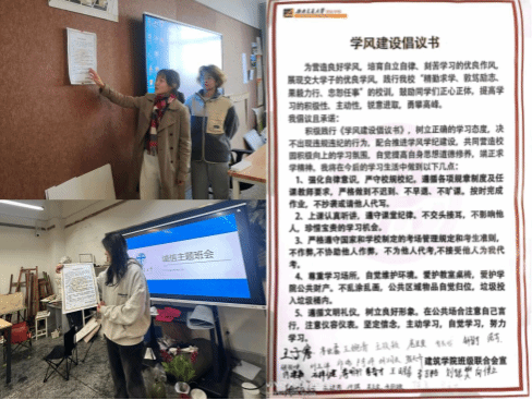 最后,班级全体同学在《学风建设倡议书》、《西南交通大学本科生诚信考试承诺书》的右下角签下了自己的名字,并在班级内进行张贴。这一环节不仅表达了同学们对诚信的承诺,也提醒了每一位同学在日常生活中要时刻保持诚实守信的品质。