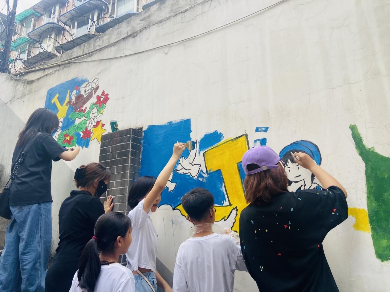 为深入学习贯彻党的二十大精神,学习红色文化,传承红色基因,引导青少年们树立正确的价值观,争做新时代好少年,7月7日,伟德体育官网青年志愿者协会在九里堤街道西南交通大学社区大学生社会实践基地的支持下开展了“童心永向党”社区红色文化墙绘活动。