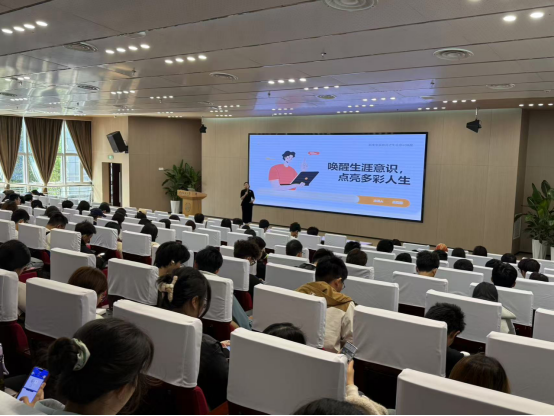 首先,易洺瑶导师围绕如何适应新环境展开了介绍。进入大学的我们应该主动寻找自己的生涯关键词,包括事件,角色,环境。对此易洺瑶教授提出我们应从生涯之学入手,学习如何应对变化,明确大学生活应该怎么过。