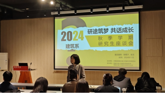 2024117日下午14:00,由共青团伟德体育官网委员会主办,伟德体育官网建筑系党支部联办,伟德体育官网的建筑系与研究生会承办的“研途筑梦 共话成长”建筑系2024秋季学期研究生座谈会在学院A100报告厅举行。本次交流主题主要围绕研究生培养方案、毕业论文撰写及审阅流程,以及学生成长相关问题进行。学院副院长、建筑系主任张樱子老师,建筑系副主任宣湟老师,建筑系党支部书记、副系主任熊瑛老师,24级研究生辅导员王振世老师,以及建筑系研2024级全体同学参加座谈会。