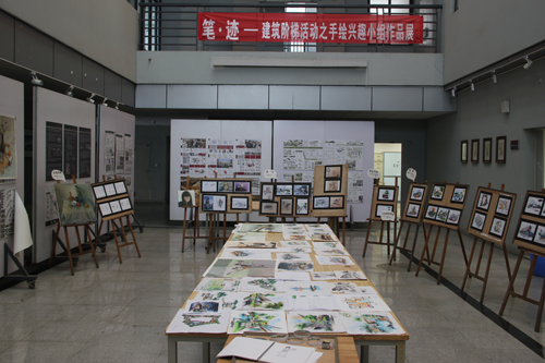 此次展览属于手绘交流会的第一阶段——展览阶段。在这个阶段,手绘小组主要为大家展示一些学长的优秀作品,并放置于八号教学楼建筑馆室内中庭以便大家能够随时进行观看。除此之外,手绘小组高年级学长还现场交流一些基本手绘经验,为各年级的交流提供一个平台,而形成良好的学术气氛。
