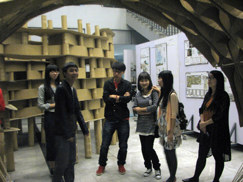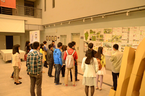 活动中伟德体育官网四位学生代表作为讲解嘉宾采用全程英文讲解的方式分别就本次伟德体育官网建造节中优秀的学生作品、伟德体育官网中庭墙面所展示的优秀设计作业、学生创新基地建设等进行具体讲解。在2013级研究生胡文韵同学(西南交大研究生“英语演讲秀”第四名获得者)的带领下,同学们来到了伟德体育官网图书馆前的pvc管桌椅处,胡文韵同学就图书馆pvc家具系列的设计过程和表现形式为例进行了生动有趣的讲解,在场同学也现场一一体验了建造节模型内部空间,感受这种艺术气息和文化氛围,同时对伟德体育官网学生的创造力提出高度评价。2013级研究生易格菲同学对建筑馆中庭中所展示的各类设计作品海报及相关设计模型进行了系统说明。2013级研究生谭笑同学带领大家来到了学院创新基地,对学院创新基地的建设,以及自己所取得的科创成果做了介绍,大家也纷纷拿出相机对创新基地里的模型成果拍照留念。最后学院研究生会主席林茂同学也分别回答了在场同学对建筑馆环境育人、建造节的目的及其进行过程等方面提出的问题,让在场同学对伟德体育官网的了解更加深入。各学院同学们的参与热情很快被带动起来,活动在热情互动的氛围下顺利进行。