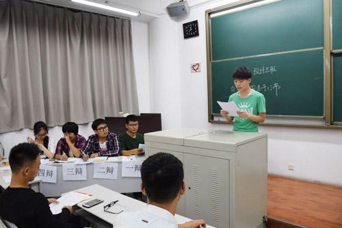 第一场比赛的辩题是“当今社会,缩小贫富差距的重点在于保证机会还是结果公平”,正方辩手是15级建筑四班代表队,反方辩手是15级建筑五班代表队。正方从贫富差距的定义提出机会公平先于结果公平的论点,而反方则认为机会公平无实际意义,结果公平制度才是最终导向,双方各抒己见。自由辩论阶段把比赛推到了高潮,双方辩友交替发言,互不相让,立足己方观点,针对对方的漏洞进行攻击,场下观众掌声不断。最后,经过评判团的评判,反方以一票之差,取得了比赛的最终胜利。