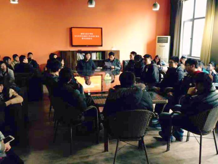 本次会议的第一个环节是由各个学生组织的负责人对2015年的工作情况进行详细的汇报。他们从团队组织建设、活动意义、开展内容以及宣传效果等几个方面,为大家展示了各个学生组织自己的特色:团学办公室主任王新博在汇报中,提到学生工作尤其强调细心认真,不求事情多少,只求做事到位,要将责任感放在第一位,并怀有一颗为同学着想的心;学生会主席张璐谈到,学生会的工作要能真正代表广大学生最根本权益,为学生代言,同时要做好学生与学院沟通的桥梁;青协主席马贻薇为大家展现了充满活力的青年志愿者协会,成员们不仅通过工作锻炼了能力,而且在学院、学校努力发扬着“团结、友爱、互助、进步”志愿者精神,并希望将这一精神发扬到社会,让更多的人能够投入到志愿者服务的公益事业中;勤工俭学中心主任王蕾蕾同学在总结中肯定了同学们的积极态度并且提出了一些问题与团队自我改进措施,并强调了勤工俭学中心要本着为学院着想,为同学服务的精神,要将勤工俭学、自我锻炼与提升修养联系在一起,切勿只追求于蝇头小利;最后,研究生会主席魏茂也提到,研究生会一直在根据研究生的特点开展活动,尤其需要强调研究生学术能力提升的问题,做到真正从同学所需的角度来展开活动以服务于大众。他们的汇报中无不透露出作为学生骨干的责任感以及作为建筑与设计学院学子的那份骄傲。
