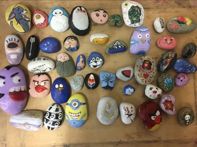活动当天,志愿者带着亲手涂鸦的石头来到二食堂和四食堂门口进行爱心义卖,过往的路人、老师、同学都围上去积极关注与询问。多姿多彩的石头们吸引了不少的同学驻足观赏:憨态可掬的熊猫列车、呆萌可爱的小黄人、承载着无数童年记忆的蓝胖子哆啦A梦……很快,石头们就被路过的同学们买走了。