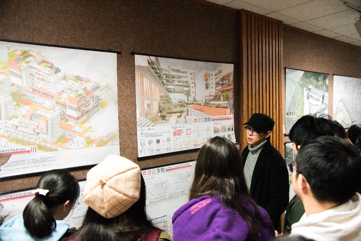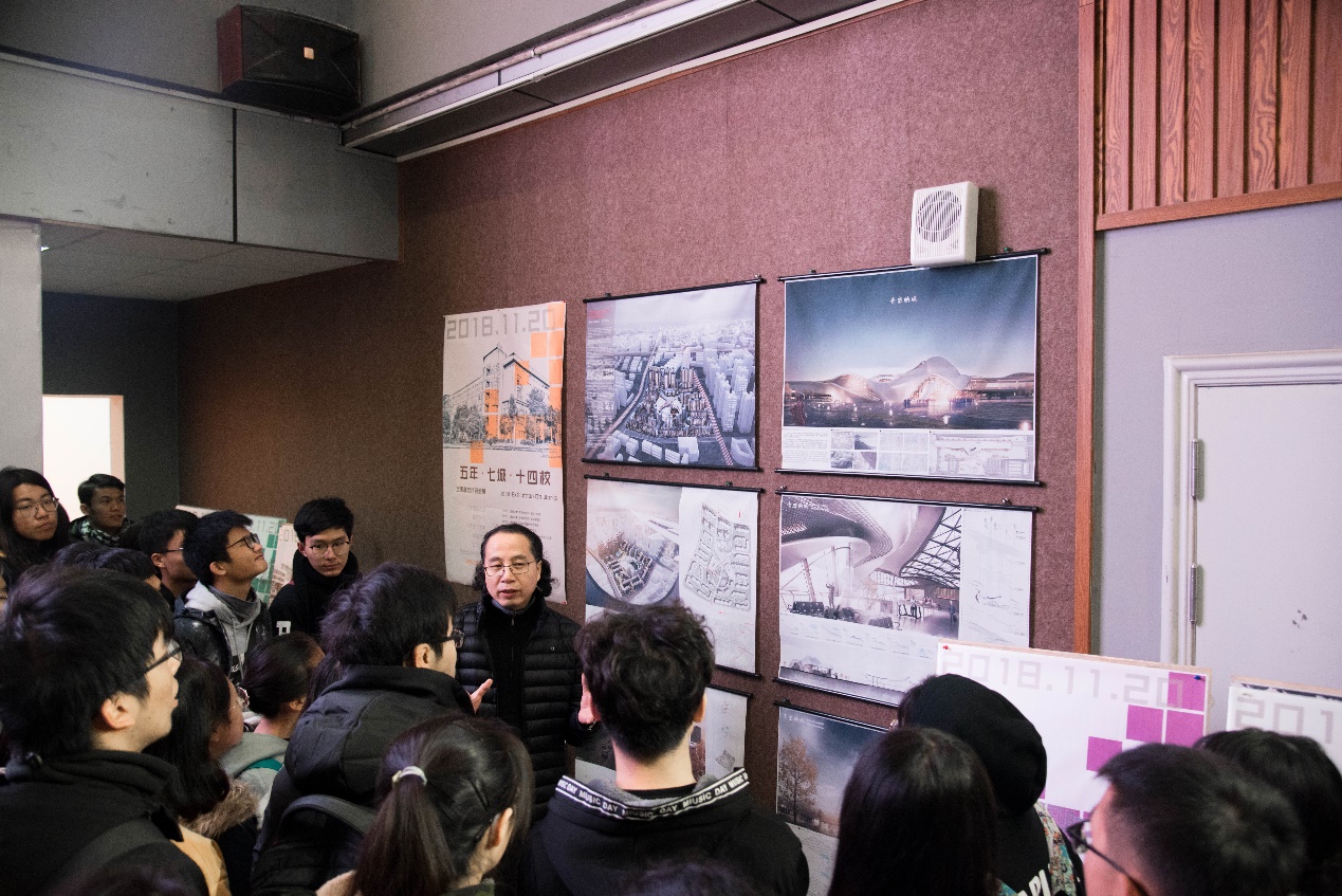 在本次高校作品联展的现场评图环节中,李老师立足我院对建筑学的专业特色之一——交通建筑的研究,对现场作品进行讲评,并引导同学们要多从人文、地理等多因素考虑,将实践与理论知识相融会来解决交通流线问题。