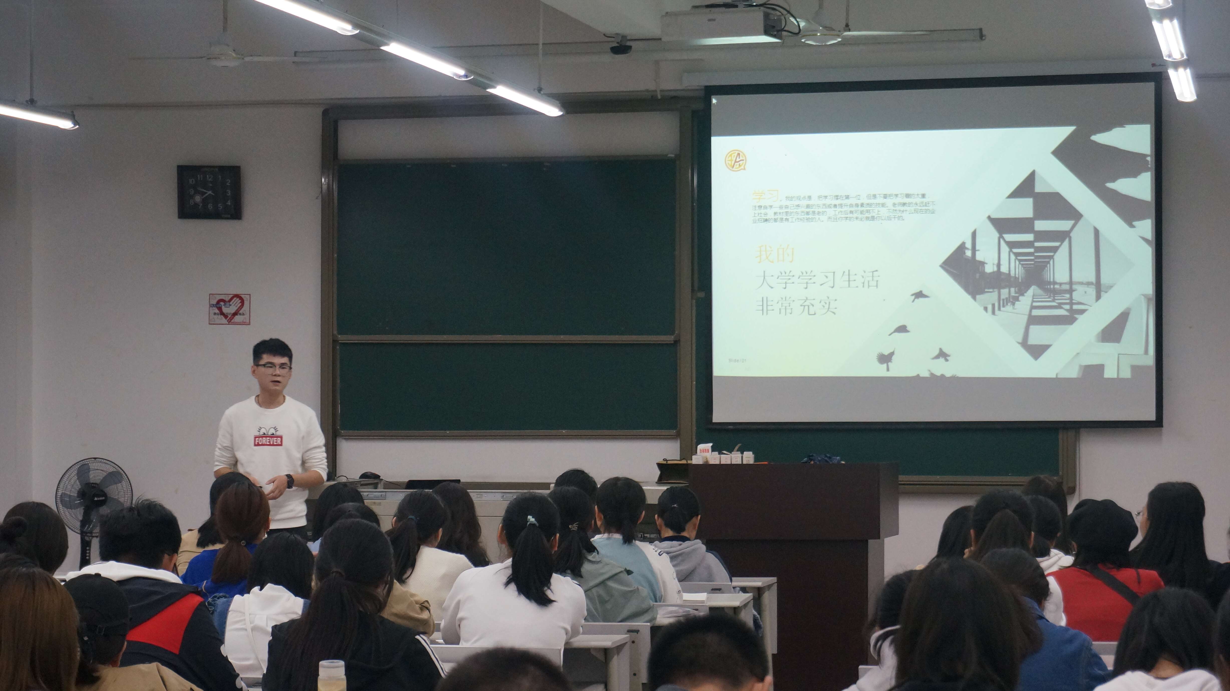 本次活动圆满结束。方仁杰同学以幽默风趣的演讲风格引得同学们笑声连连,现场气氛活跃轻松,并与听众互动频繁,在最后的提问环节中,同学们纷纷举手发言,方同学也耐心地一一回答。通过本次活动,新同学们充分了解到了大学生活,初入大学时的各种疑惑得到了一定程度的解决。班级联合会通过本次活动增进了各个部门之间的配合,也让刚加入组织的新成员融入了班级联合会的工作氛围之中。有望在接下来交流讲座活动的活中开起展新的篇章。