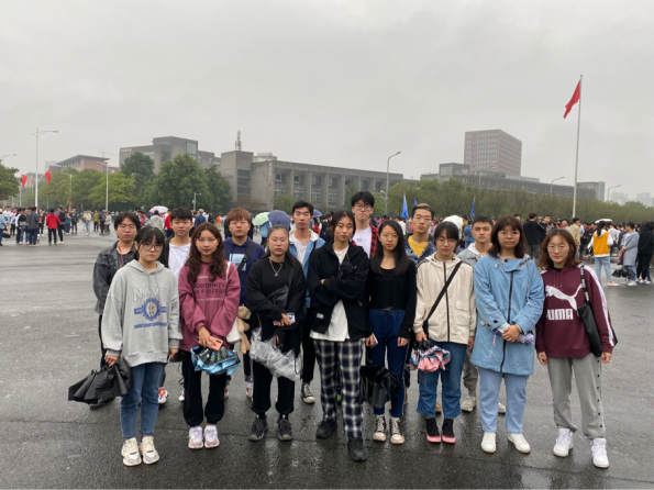 虽然天空下着小雨,但丝毫没有影响同学们的热情,早上八点,同学们都准时到达了观看台,升国旗唱国歌。凝视着鲜红的国旗冉冉升起,每个人都流露出强烈的爱国情。升旗仪式过后,团支部同学在国旗下合影留念。