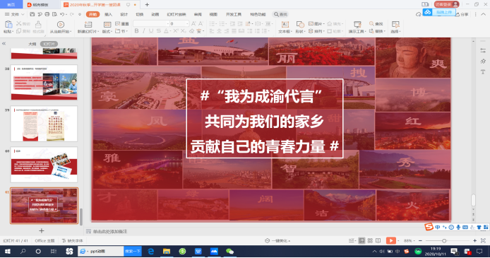 2020年10月11日19点,建筑与设计学院研2019级城乡规划团支部于利用腾讯会议线上平台开展了主题为“带你走近‘成渝地区双城经济圈’”的第一堂团课学习,团支部38名团员全部准时参加第一堂团课的学习。