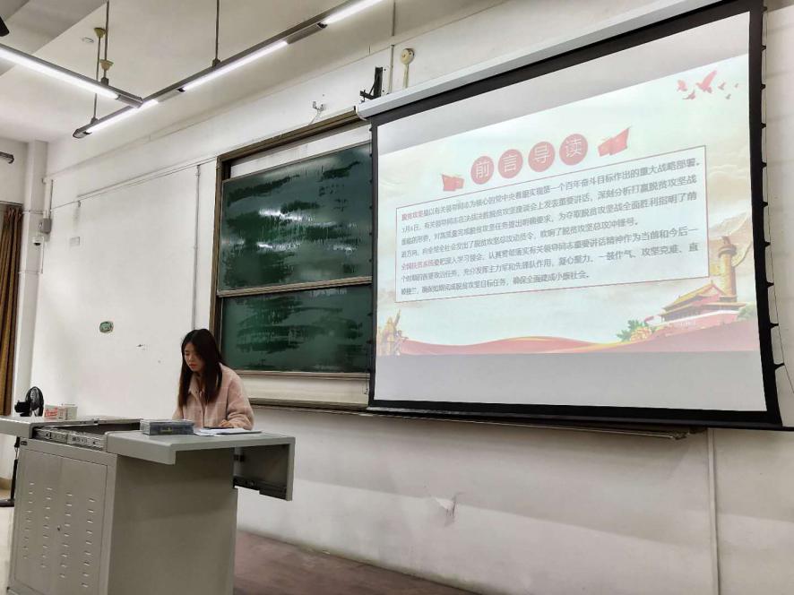 会议开始,首先党支部副书记李聪同志介绍了本次会议流程,带领大家学习了决战决胜脱贫攻坚座谈会议精神。今年是决胜全面建成小康社会的收官之年,也是向脱贫攻坚发起总攻、夺取全胜的决战之年,确保如期高质量打赢脱贫攻坚战关系全局、意义重大,大家表示要坚定必胜信心,扛起职责使命,确保如期高质量打赢打好脱贫攻坚收官战。李聪同志从‘坚决扛起政治责任,坚定打赢脱贫攻坚战的信心和决心’、‘凝心聚力狠抓落实,确保高质量完成脱贫攻坚目标任务’、‘精准施策打赢脱贫攻坚收官之战’三方面详细讲解了夺取脱贫攻坚战全面胜利的信心和决心。讲解结束后,大家进行了热烈的讨论,表示我们要以更加昂扬的斗志、更加坚定的决心、更加饱满的干劲,全力以赴、只争朝夕,坚决夺取脱贫攻坚战全面胜利,为全面建成小康社会作出新的更大贡献。