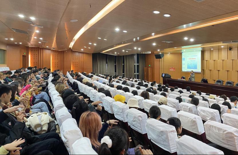 讲座开始,董洁老师以“你适应大学了吗?”话题引入,现场气氛轻松活跃。董老师谈到,高中与大学的最大落差莫过于学业所带来的价值感,大学更偏向将来的职业人生规划而非学业。所以,董老师提醒大家要关注高中和大学的心理过渡期,高中学习的外驱力应及时转化为大学学习的内驱力,避免形成学业低谷期。