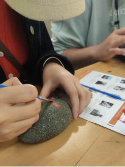 在活动中,志愿者们用画笔在鹅卵石上一笔一笔画下了对党未来的美好期许,对祖国的美好祝福。刚开始时大家对于在鹅卵石上绘画感到好奇但是更多的是生疏,但是在工作人员的帮助下,大家热情澎湃,纷纷投入了绘画中,取得了丰富的收获。