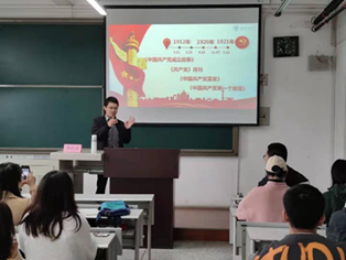 讲座伊始,李彦虎博士便指出,学习党史的意义在于学史明理、学史增信、学史崇德、学史力行。在讲座中,李彦虎博士分别从"中国共产党的称谓、中国一大开幕时间、中共一大闭幕时间、7月1日建党节、中共一大代表"五部分展开,以扎实的史实,缜密的语言,图文并茂地讲授了中国共产党的诞生过程及背后的故事。李彦虎博士讲到,历史的洪流不断向前,中国共产党人在中国革命、建设、改革进程中一直坚守着自己的初心和使命,在大浪淘沙中英勇奋斗、不断前行,嘉兴南湖上的小小红船,如今也日益成为扬帆在国际舞台中央的巨轮。他号召同学们不论以后身居何职、身在何处,都要坚定自己的理想信念,因时而变,勇于创新,争做堪当民族复兴大任的时代新人。