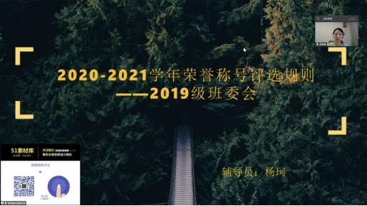 2021年9月18日上午10时,西南交通大学建筑与设计学院“2020-2021学年荣誉称号评选规则——2019级班委会”指导会议以线上会议顺利召开。此次指导会由研2019级辅导员杨珂老师主持,2019级研究生全体班委参加了此次会议。