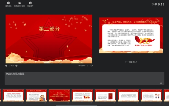 会议流程三:主持人总结。主持人张莎分享习近平讲话内容中的一段话“未来属于青年,希望寄予青年。”一百年前,一群新青年高举马克思主义思想火炬,在风雨如晦的中国苦苦探寻民族复兴的前途。一百年来,在中国共产党的旗帜下,一代代中国青年把青春奋斗融入党和人民事业,成为实现中华民族伟大复兴的先锋力量。习近平总书记在庆祝中国共产党成立100周年大会上的讲话中提到:“新时代的中国青年要以实现中华民族伟大复兴为己任,增强做中国人的志气、骨气、底气,不负时代,不负韶华,不负党和人民的殷切期望!”