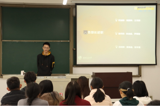 学生会权益部、宣传部、活动部部长以及主席团成员分别对部门职能以及近期开展工作进行了汇报分享,使干事对各部门只能更加了解,以便后期工作的开展。