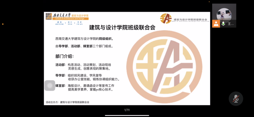 在活动开始时、首先由班级联合会前任理事长张茜茹学姐介绍大学期间学习生活上的相关经验以及可参与的校内外竞赛活动,还让新同学们了解到在校期间有关实习兼职的部分内容;随后由梁浩宇学长带我们了解在大学内如何调整休息时间,拒绝无效内卷,提高学习效率,维持心理健康的重要性;接着,史祎昕学姐详细阐述了有关艺术类专业的知识获取方式,分享了许多优质的微信公众号、网站以及APP;最后由张子纯和向梦琦学姐给大家带来了奖学金及其获奖资格的要求和流程,以及在学习过程中如何调节与平衡自己的学习压力,王星月学姐还为大家带来了有关第二课堂的讲解,使同学们受益匪浅。