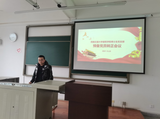 2021年12月23日14时,伟德体育官网博士党支部在X8522教室进行了预备党员转正大会。此次会议中曾如思同志发表转正志愿,并顺利由中共预备党员转为正式党员。