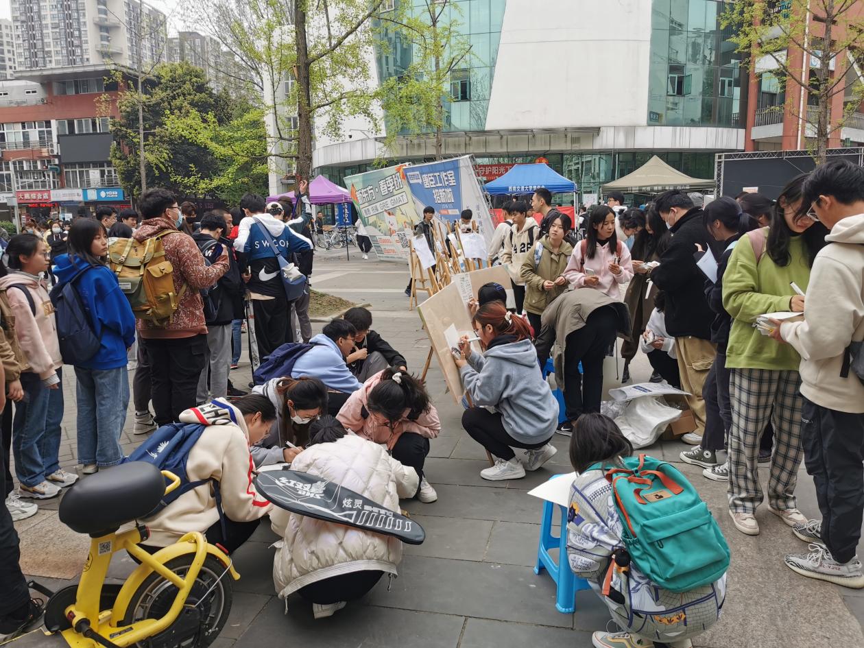3月25日,“善爱健康之我,同心跟党向未来”心理健康知识游园会于我校犀浦校区二食堂前活动场地正式举行。本次游园会包括“不倒翁”、“绘制生涯彩虹图”等趣味性活动,不仅设置答题与游戏环节,还邀请到学院绘画专业同学针对活动主题进行现场作画。