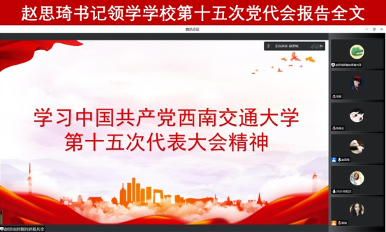 议题二是学习中国共产党西南交通大学第十五次代表大会精神。由支部书记赵思琦同志带领支部全体党员学习学校第十五次党代会的报告全文——《踔厉奋发 笃行不怠 谱写中华民族伟大复兴的西南交大新篇章》,对学校第十五次党代会精神进行了重点传达。赵思琦同志强调,支部要坚持以习近平新时代中国特色社会主义思想为指引,紧紧围绕学校的发展思路,不断加强学习教育,贯彻落实本次党代会精神。全体党员同志认真学习报告内容,纷纷表示将不断强化责任担当,提高自身素质,践行初心使命,为建设交通特色鲜明的世界一流大学贡献青春力量!