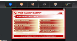 会议第二项,黄越同志带领大家深入地学习了西南交通大学第十五次党代会精神。他首先强调了这次党代会的主要精神集中体现在党代会的报告中,随后从对第十四次党代会以来的工作回顾、学校未来五年乃至到建校150周年之际办学治校的总体思路、发展目标、基本准则和未来五年学校高质量发展的实现途径以及全面加强党的建设和思想政治工作引领全校各项工作向一流进军四个部分对会议精神进行了传达和解读,最后还对第十五届委员会第一次全体会议的情况进行了详细介绍。