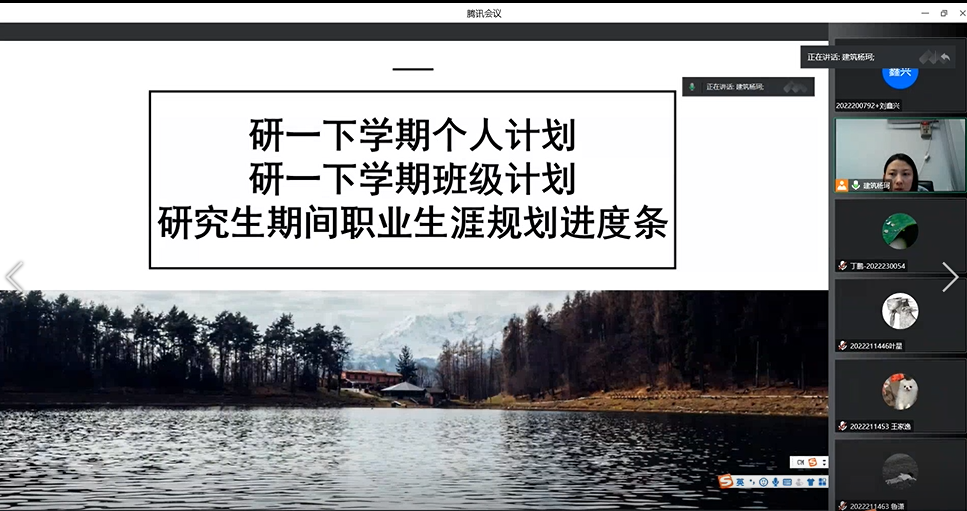 会议伊始,杨珂老师从“研一下学期个人计划+研一下学期班级计划+研究生期间职业生涯规划进度条”三个方面提出新的一学期,全体同学应该着重发力的方向。在个人计划的实施过程中,要学会自我管理、及时自我反思、坚持自我提升。在班级计划的开展中,激发了同学们在科研学术、文体活动等方面的热情,增强了集体凝聚力,营造了积极向上、团结活泼的氛围。