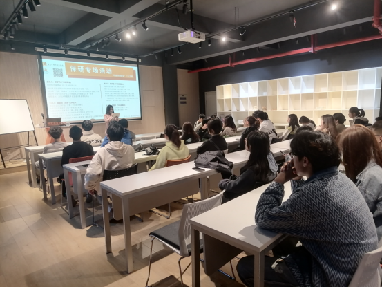 此次活动主题为保研分享,班级联合会和就业服务中心邀请了徐宇飞、吴爱千、张润旋、夏姿彤四位在各自专业成功保研的优秀同学进行就保研相关的学院政策解读、阶段规划、个人经验等内容分享。