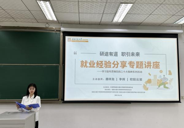 2023年6月15日14:30,伟德体育官网研究生会联合研建筑学专硕党支部、研城乡规划党支部联合开展的“学习宣传贯彻党的二十大精神系列活动——就业经验分享专题讲座”在X1315教室顺利举办。伟德体育官网辅导员杨珂、赵思琦、罗勋锐三位老师作为嘉宾出席,2023届毕业生唐祥龙、李辉和欧阳云鉴三位担任主讲人,近100名同学参加本次讲座。