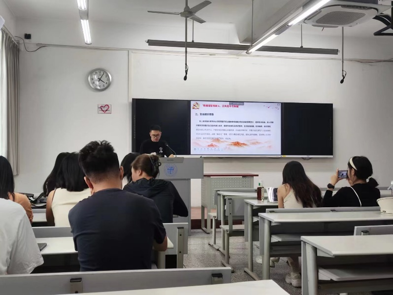 2023年9月14日下午,研建筑学学硕党支部于教室X8521召开“学习贯彻习近平新时代中国特色社会主义思想”主题教育。会议由宋海波同志主持,支部指导老师罗勋锐、支部全体党员及积极分子共同参与。