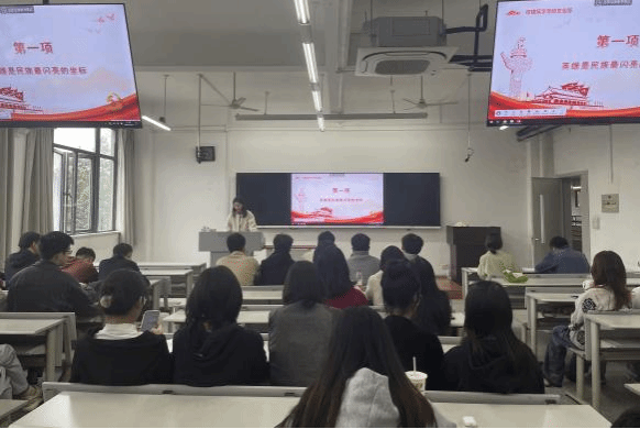 会议第二项由汪韵涵、周姝、唐肖琳、陈瑜四位入党积极分子进行党史人物事迹分享。汪韵涵同志分享了“刘秉彦:从一介书生到开国将军”的事迹,刘秉彦一个从北大书生成长为开国少将的传奇人物,在战场上屡立奇功,充分体现了他作为一名共产党员和人民军队指挥员的忠诚和智慧,他在航天事业、地方建设等方面都有着卓越的成就,是一位真正的儒将,一位值得我们敬仰和学习的英雄。周姝同志分享了“做方志敏精神的时代传人”的事迹,方志敏精神是革命年代的,也是当今时代的,是伟大时代精神的折射和体现,具有跨越时空、历久弥新的深刻意蕴和价值,而且必将随着岁月的推移愈来愈显示其巨大的时代价值。唐肖琳同志分享了“孤胆英雄:卜凤刚”的英雄事迹,卜凤刚有功不居功,有权不谋私,坚守初心,不改本色。直到今天,他的英雄事迹仍能凝聚起万众一心,奋斗新时代的强大力量。最后陈瑜同志分享了“筑路老英雄:韦江歌”的事迹,从劈山开路的英勇战士,到默默耕耘的朴实农民,韦江歌深藏功名、淡泊名利,用一生践行了一名共产党员的初心使命,他甘为平凡却不凡。研建筑学专硕党支部全体党员和积极分子在学习英雄先烈的事迹中感悟精神内涵,缅怀革命烈士,延续红色血脉。把对革命先烈的追思之情转化为奋楫前行的不竭动力,以英烈为榜样不断奋进,书写时代新篇章。