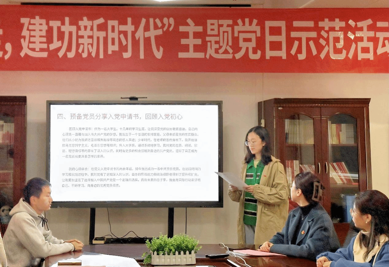 然后,两位预备党员向大家分享了他们的入党申请书的部分篇落。两年之后重温当年提交入党申请书时的初心,两位同志再次坚定最初的信仰和为党的事业而努力奋斗的决心。
