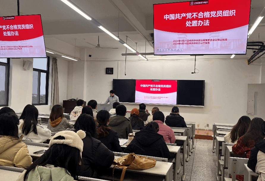 2024年11月26日下午17:30,为深入贯彻落实党的二十届三中全会精神,进一步深入推进党纪学习教育,加强支部党员的思想纪律建设,本科城乡规划党支部、美术系教师与研究生党支部在犀浦校区伟德体育官网X8526召开主题党课。本次党课邀请到伟德体育官网党委副书记、纪委书记刘一杰同志担任主讲嘉宾,围绕《中国共产党不合格党员组织处置办法》的具体要求进行学习。本次党课旨在深化党员对党的纪律规定的认识,强化党性教育,确保党员行为规范与党的要求保持一致。