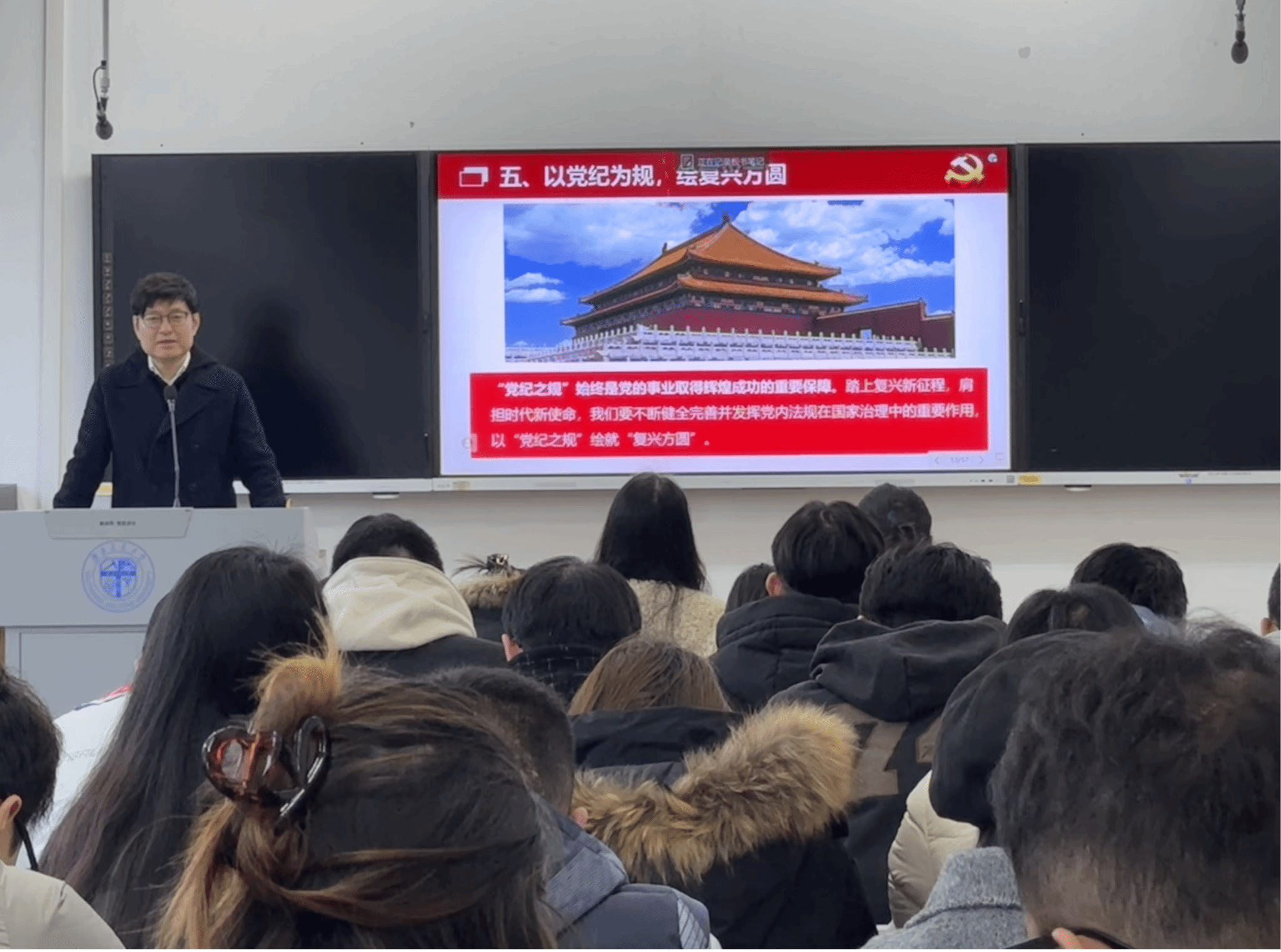 2024年12月12日16:30,为深入学习贯彻习近平新时代中国特色社会主义思想、党的二十届三中全会精神以及《关于在全党开展党纪学习教育的通知》的学习,进一步加强党的纪律建设、推动全面从严治党向纵深发展,学院党委委员崔叙同志以“学党纪 强党性 促发展 谋复兴”为主题,在伟德体育官网X8321面向城乡规划系党支部、研城乡规划党支部以及研城乡规划第二党支部全体成员讲授党纪学习教育专题党课。