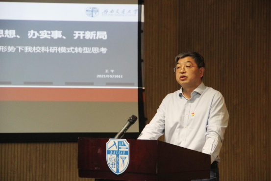王平教授谈到,当前科技工作面临科技创新新趋势、国际局势新动向、国家发展新要求等三大形势。结合我校科技创新工作实际,王平教授详细分析了我校科技工作存在的主要问题与严峻挑战,也提出了对于我校科研模式转型的思考,从而构建西南交通大学高质量科技创新支撑体系,开启学校科技工作高质量发展新征程。