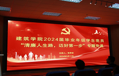 2024年5月11日下午,为深入推进党纪学习教育,筑牢党员的初心与使命,教育引导大学生打好人生底色,在成长拨穗期扣好廉洁自律的“第一扣”,在成长黄金期系好廉洁自律的“安全带”,伟德体育官网党委邀请学校党委副书记、纪委书记张学龙为学院2024届毕业生党员讲授“清廉人生路,迈好第一步”廉洁教育专题党课。学院党委副书记、纪委书记刘一杰,学生工作组全体辅导员及毕业生党员、研建筑学党支部全体党员和其他党员、入党积极分子代表参加了党课学习。党课由学院党委书记胡伟主持。